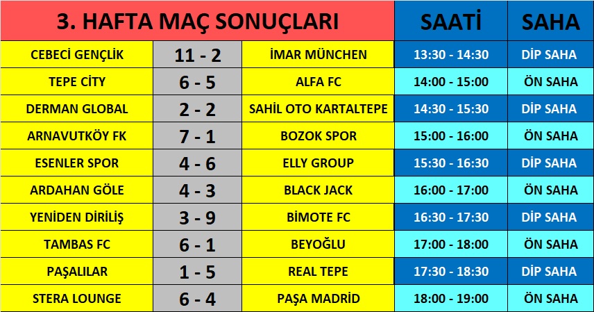 3. HAFTA MAÇ SAATLERI YAYINDA.... |