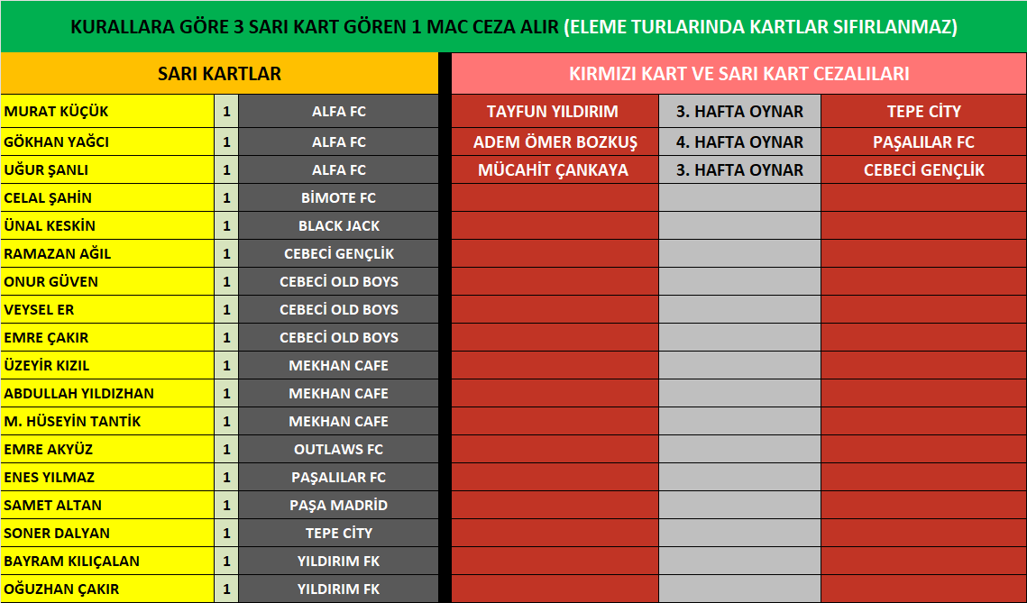41. EBU MEDYA FUTBOL TURNUVASI 1. HAFTA DİSİPLİN KURULU KARARI... ![]() 41. EBU MEDYA FUTBOL TURNUVASI 1. HAFTA DİSİPLİN KURULU KARARI... Turnuvamızın 1. hafta maçları geride kaldı. İzlediğimiz 10 maçın 1 i hariç geri kalan 9 maçta karşılıklı söylem dahi yoktu. Bir birine saygı duyan takımlar izledik. Ayrıca EBU MEDYA yöneticileri tarafından bu hafta tespit edilmiş bir durum bulunmaktadır. Bu hafta oynanan BLACK JACK - PAŞALILAR maçında, yaşanan bir pozisyon sonrasında BLACK JACK takım oyuncusu ÜNAL KESKİN ile PAŞALILAR FC takım oyuncusu ADEM ÖMER BAZKUŞ arasında diyalog ve ağız dalaşı yaşandı. Hakem iki oyuncuya da sarı kart ile cezalandırdı. Fakat PAŞALILAR FC takım oyuncusu ADEM ÖMER BOZKUŞ un sokak ağızı argosu ile rakibine söylemde bulunması hakem tarafından tespit edildi ve ikinci sarı kart dan kırmızı kart ile oyun dışı bırakıldı. KARAR: Başarılar....