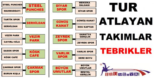3. TURA YUKSELAN TAKIMLAR ![]() 3. ZIGANA HALI SAHA TURNUVAMIZDA 2. TUR MACLARI BUYUK MUCADELELERE SAHNE OLDU GENEL OLARAK FAVORI TAKIMLARIN GALIP GELDIGI MACLARDA OLDUKCA NEFES KESEN DAKIKALARDA OLDU. ELEME MACLARINDA GRUPLARINI SON SIRALARDA BITIREN TAKIMLARIN DAHI MACLARA TAM KADRO CIKMASI ILE HER MAC ADETA FINAL NITELIGINDE GECTI. ÖZELLIKLE BIR IKI MAC IZLEYENLERI HOP OTURTUP HOP KALDIRDI. GENEL OLARAK CENTILMENCE GECEN MACLARDA BAZI TAKIMLARI KENDI ARALARINDA TARTISMALARI O MACLARI GOLGELEDI. HAVANIN COK SICAK OLMASINDAN DOLAYI TUM TAKIMLAR OLDUKCA ZORLANDI VE HER MACTA SU MOLASI VERMEK DURUMUNDA KALINDI. SALI GUNU YAPILACAK KURA CEKIMI ILE TURNUVAMIZIN 3. TUR , CEYREK FINAL, YARI FINAL VE FINAL MACLARI OYNANACAKTIR. TUM TAKIMLARA BASARILAR DILERIZ. |