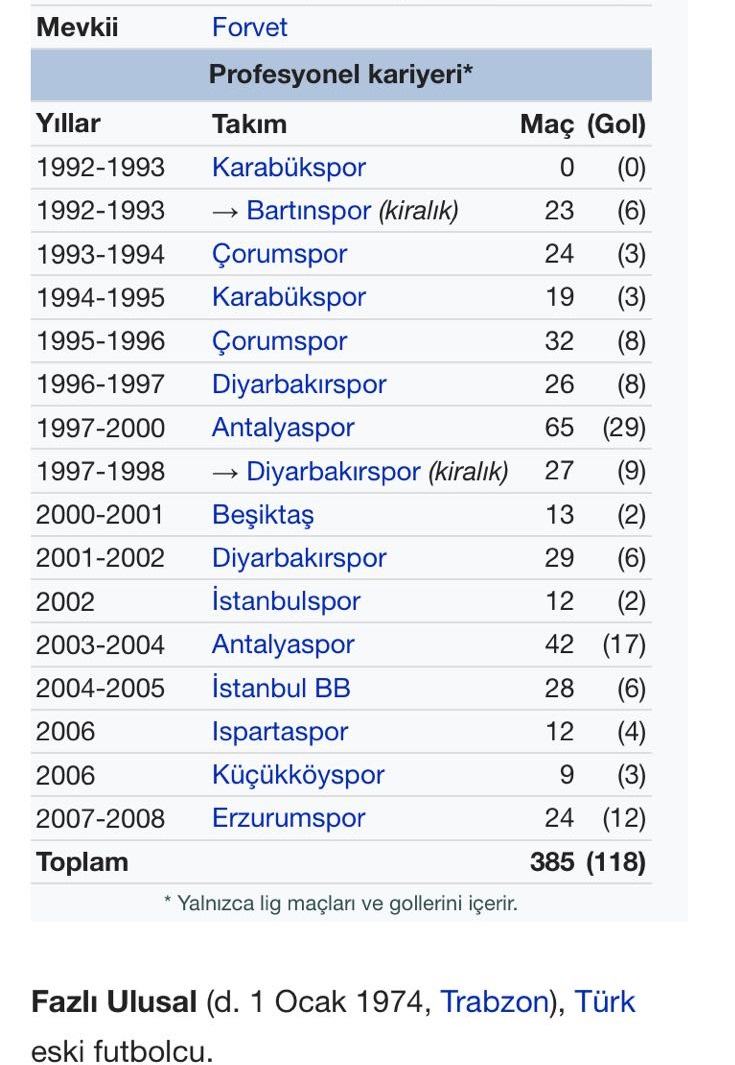 GELMİŞ GEÇMİŞ EN BUYUK TRANSFERE İMZA ATTILAR ![]() GELMİŞ GEÇMİŞ EN BUYUK TRANSFERE İMZA ATTILAR '' FAZLI ULUSAL '' TOPLAMA KAMPI takımında... FAZLI ULUSAL '' tarafıma EBU MEDYA FUTBOL TURNUVASI için oynama teklıfı yapan Aziz Ergüveni kırmayarak kabul ettım. Elimden geldiği kadarıyla takımın maclarına musaıt olma durumumda onlarla olmak isterim. Bizler futbolun guzel yanları ıcın her zaman elımızden gelenı yaptık ve yapmaya da devam edecegız. İlginiz için tesekkur ederım '' dedi.. EBU MEDYA FUTBOL TURNUVASINDA bugune kadar bır cok amator yada profesyonel karıyerı olan oyuncu yer aldı. Fakat FAZLI ULUSAL gibi bir değerin turnuvamızda yer alması EBU MEDYA ailesi olarak bizleri ayrıca grurlandırmaktadır. Halen çok fit ve çevik göründüğünü ayrıca belirtmek istiyor ve Kendisine teşekkür ediyoruz. FAZLI ULUSAL IN KARIYERI.