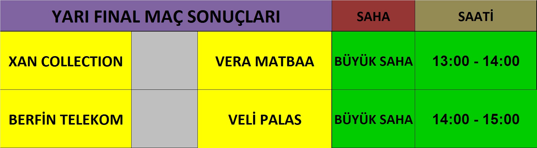 YARI FINAL MAÇ SAATLERİ DEĞİŞTİ.. BUNA GORE MAC SAATLERI SU SEKILDEDIR. ( Konu hakkında Baki bey den bilgi alabilirsiniz)