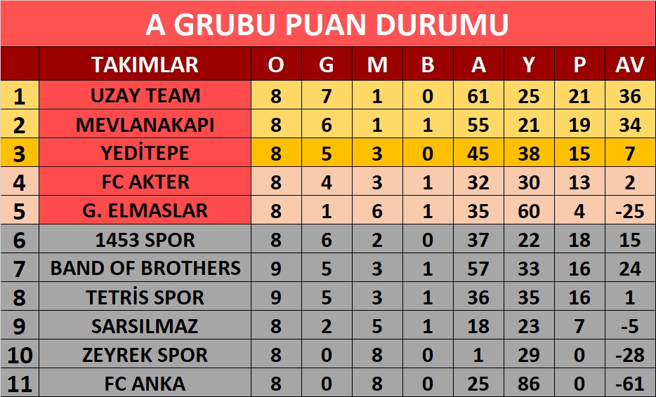 Böylelikle A GRUBU nda kalan 5 takım bir üst tura cıkmayı garantılemıştir.