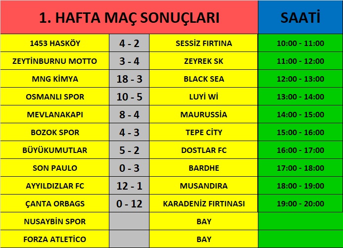 Turnuvamızın 1. hafta maç saatleri yayınlandı.