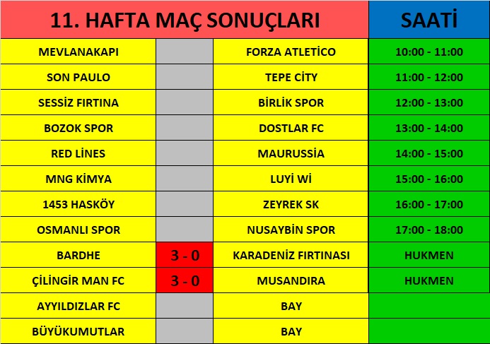 GİWEEN TEKSTİL / EBU MEDYA FUTBOL TURNUVASI 11. HAFTA MAÇ SAATLERİ YAYINDA.. ![]() GİWEEN TEKSTİL / EBU MEDYA FUTBOL TURNUVASI 11. HAFTA MAÇ SAATLERİ YAYINDA.. Turnuvamızın 11. hafta maç saatleri yayınlandı. İŞTE MAÇ SAATLERİ.. ![]() |