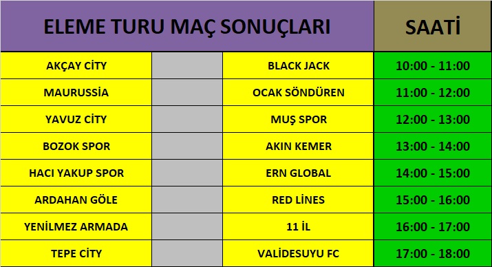 35. EBU MEDYA FUTBOL TURNUVASI FİNAL YOLU BELLİ OLDU. ![]() 35. EBU MEDYA FUTBOL TURNUVASI FİNAL YOLU BELLİ OLDU. Eleme turları kura çekiminin tüm maçları, günleri ve saatleri belli oldu. İnanılmaz eşleşmeler ve bir sonraki turların hesabı şimdiden başladı. Özellikle Şablonda sağ tarafda yer alan takımlar finale kadar adeta her maçı final havasında oynayacaklar. Tüm maç yorumları bu akşam saat 18:45 de başlayacak olan MAÇ YORUMLARI you tube kanalımızdan izlenebilecektir. Tüm takımlara başarılar.