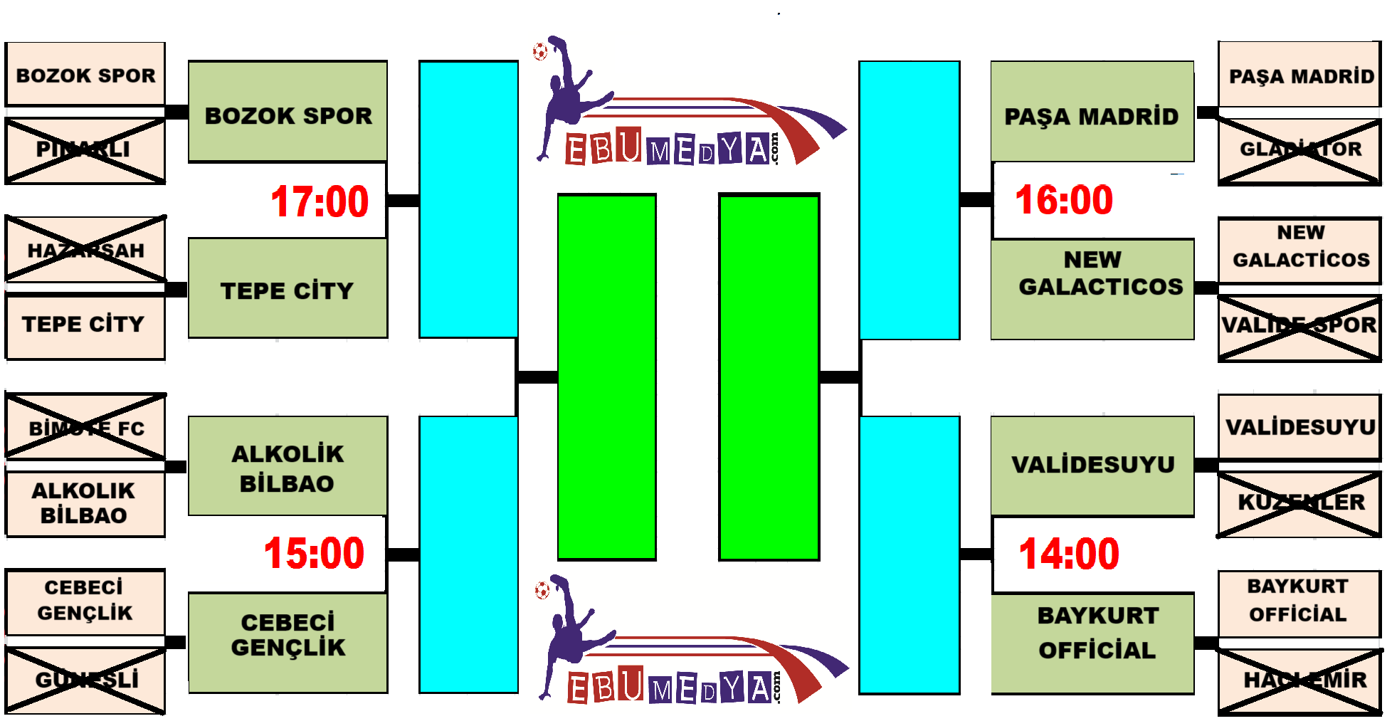 SON DAKİKA... ÇEYREK FİNAL MAÇINDA HÜKMEN MAĞLUBİYET KARARI... ![]() SON DAKİKA... ÇEYREK FİNAL MAÇINDA HÜKMEN MAĞLUBİYET KARARI... Bugün oynanan günün son maçında büyük bir hataya imza atıldı. VALİDESUYU - HAWKTHRONE maçının son dakikalarında 4-1 önde olan VALİDESUYU takımı 4. oyuncu değişikliği yaparak büyük bir hataya imza attı ve maçın bitmesine 1 dakika yapılan bu oyuncu değişikliği sonrasında çalan bitiş düdüğü ile ilgili değişikliğin 4 adet olduğu tespit edildi. EBU MEDYA FUTBOL TURNUVASI KOMİTESİ olarak öncelikle VALİDESUYU oyuncularıyla görüşüldü ve yapılan itirazlar dinlendi. EBU MEDYA YÖNETİCİLERİ olarak yaptığımız toplantı sonrası '' Kurallarımız gereği VALİDESUYU takımı HÜKMEN mağlup sayılmıştır''. Bu karar ile HAWKTHRONE takımı yarı finalde HAYDAR SPOR un rakibi olmuştur. Yarı final maçları salı günü akşam 21.00 ve 22.00 da oynanacaktır. Eşleşmeler aşağıdaki gibidr.
